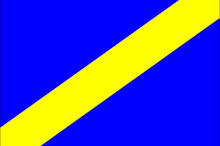 Blue flag with diagonal yellow stripe.