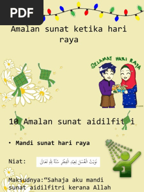 Dalam dua hari raya umat islam yaitu idul fitri dan juga idul adha merupakan momen yang cukup istimewa bagi semua kalangan umat islam, tidak hanya karena pada waktu tersebut selalu disambut dan dirayakan oleh umat islam. Hari raya aidilfitri is a holiday which is celebrated in indonesia, malaysia, singapore, philippines, and brunei, and celebrates the end of ramadan. Disunatkan mandi di pagi raya sepertimana mandi wajib, iaitu sebelum keluar menuju ke masjid untuk solat aidilfitri. Mandi hendak sholat istisqo' 4. Hari raya dalam islam adalah hari raya aidilfitri dan hari raya aidiladha.