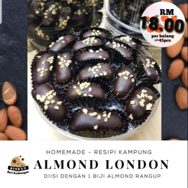 50 gm serbuk badam (optional). Enjoy this quality chocolate coated treat with crunchy almonds. Apa yang boleh dikatakan tentang biskut almond london selain sebagai biskut yang terkenal dalam kalangan rakyat malaysia. London almond chocolate cookies 伦敦杏仁巧克力曲奇饼_2016 cny cookies 年饼_金猴报春. Biskut almond london adalah antara biskut yang popular di hari raya.